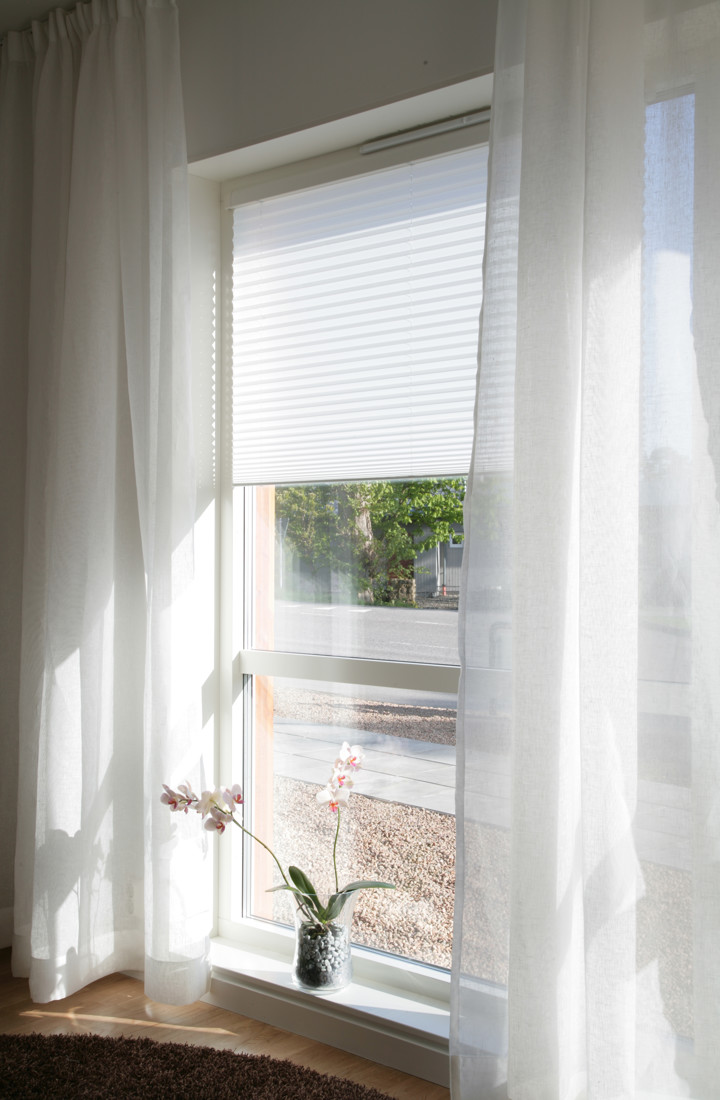Ett snyggt och praktiskt solskydd av textil som kan ersätta gardiner.