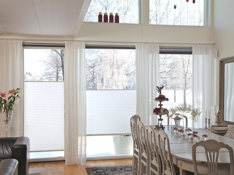 Ett sol- och insynsskydd som tack vare en smart 2-vägsmanövrering med valfri positionering kan användas både till både solskydd och insynsskydd, att den inte har några lösa linor gör också att den alltid klarar kraven för barnsäkerhet. Tyget finns att välja i fem olika färger som standard, ytterligare 13 vävar finns att välja på som tillval. Plissén monteras antingen på bågen till öppningsbara produkter och i karm på fasta fönster, väljs vid beställning. Passar till Outline 3 glas Trä och Outline 3 - glas Trä/Alud ock ej på fönster med invändig antikprofil.